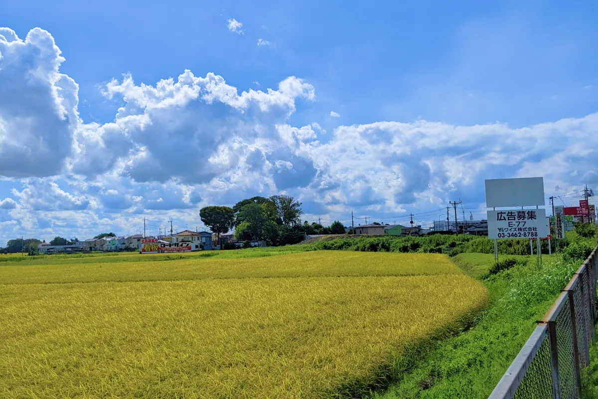 田んぼが多いエリアである一方、駅前のウニクス南古谷は映画館もあり便利。