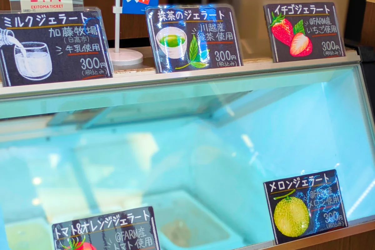 ジェラートはミルクやいちごのほか、川越産トマトや河越抹茶など、川越市ならではのジェラートメニューも提供。