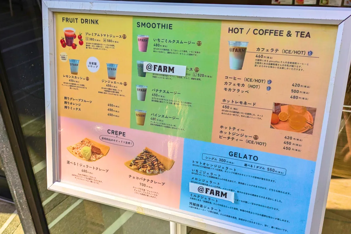 @FARM Styleは、川越駅近くの好立地で、地元の川越産の新鮮なフルーツや野菜を使ったドリンク・スイーツが楽しめます。