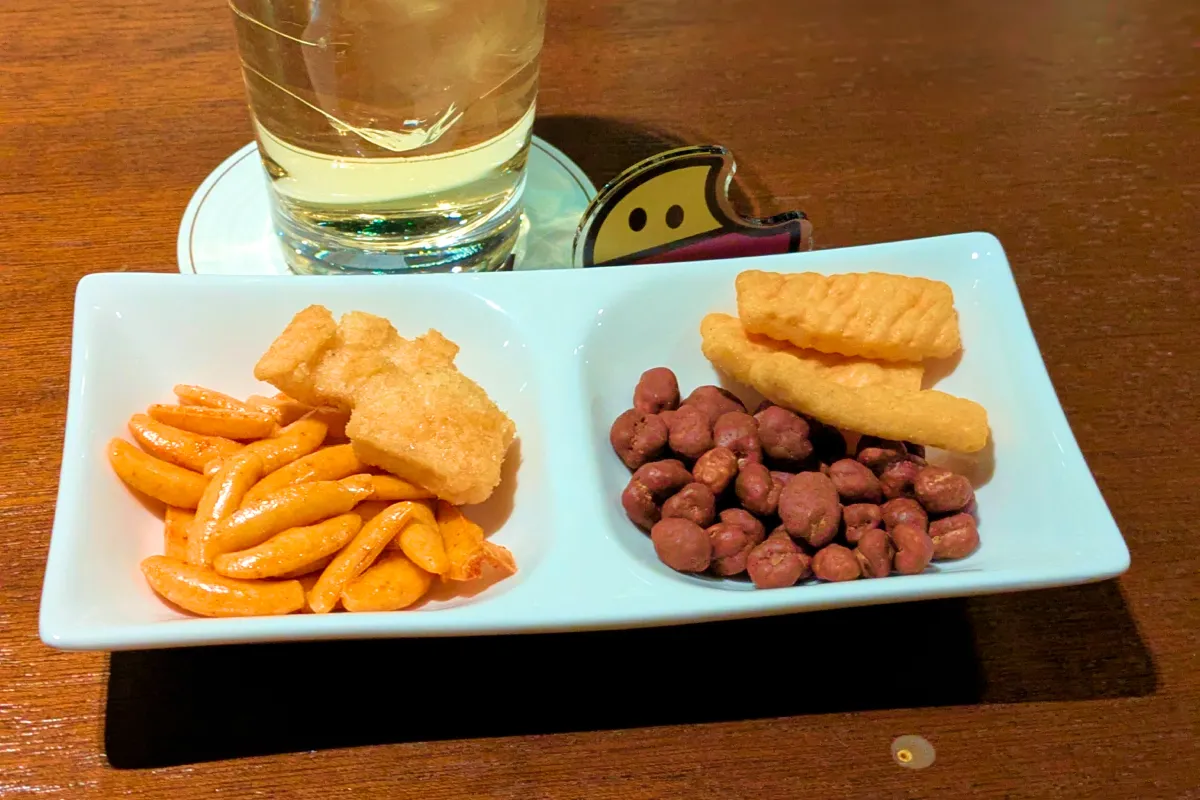 柿の種は梅味でお酒と相性抜群過ぎる…!全バーに置いてほしいくらいでした。