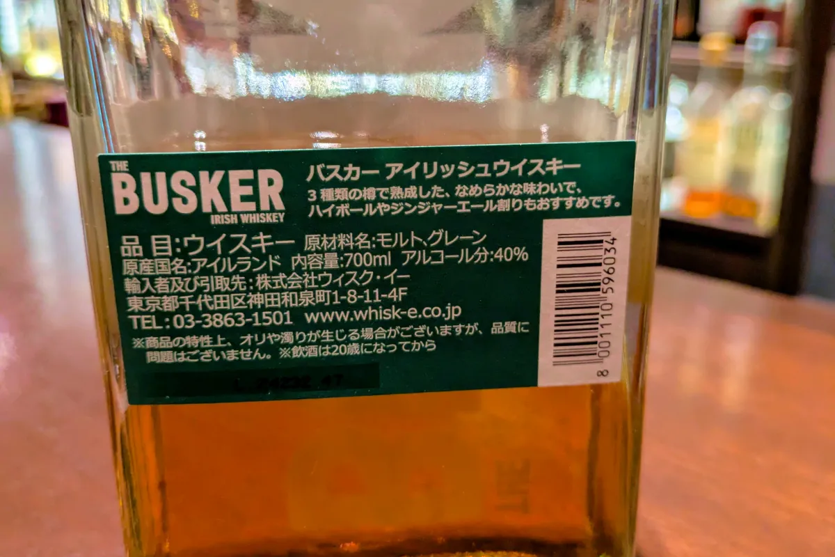 割と初心者向けにはグレンリベットが選ばれがちなので、せっかくならと珍しめのバスカー アイリッシュウイスキーをチョイスしたとのこと。