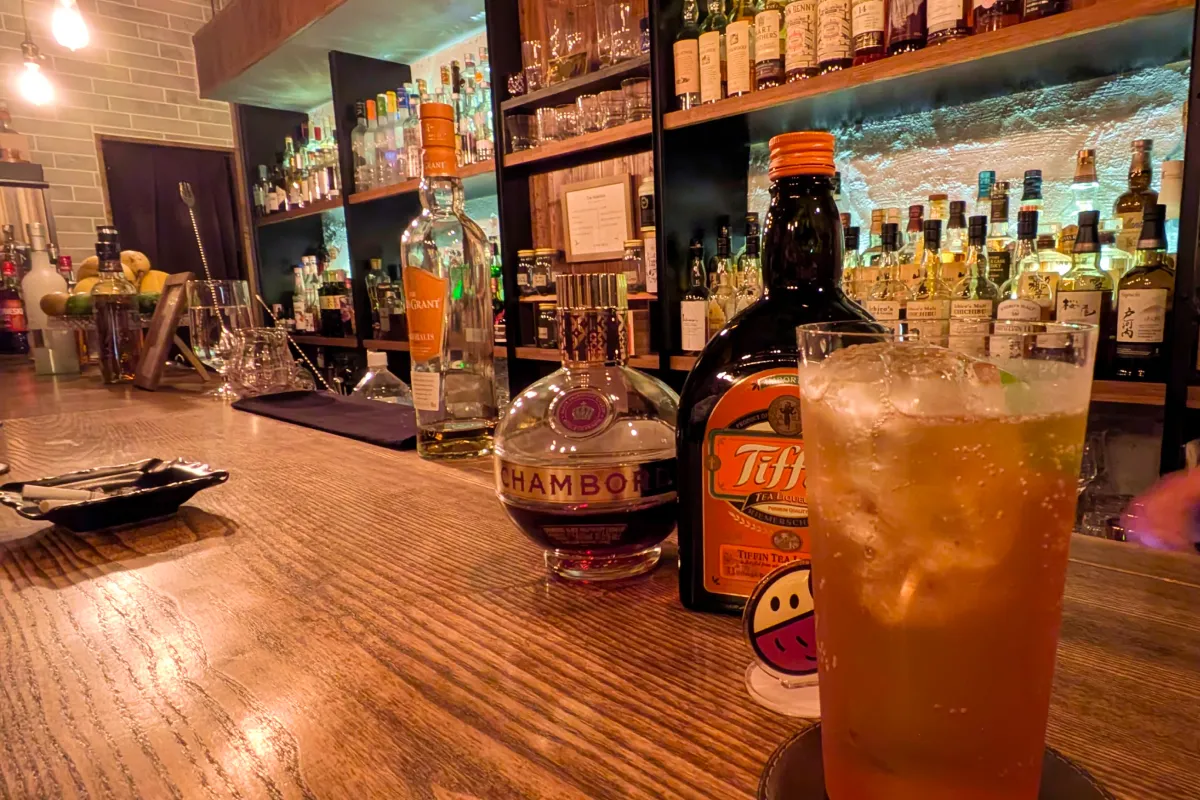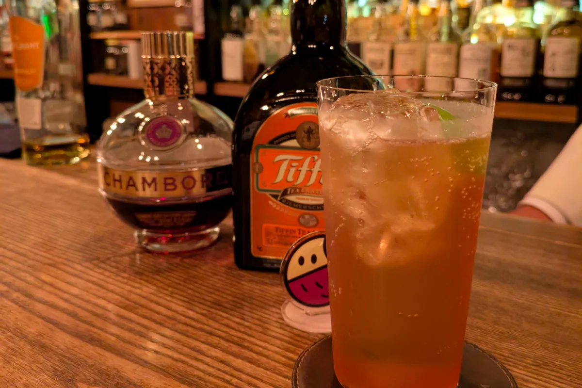 紅茶リキュールにフランボワーズ、ジンジャーエールで割ったカクテル。