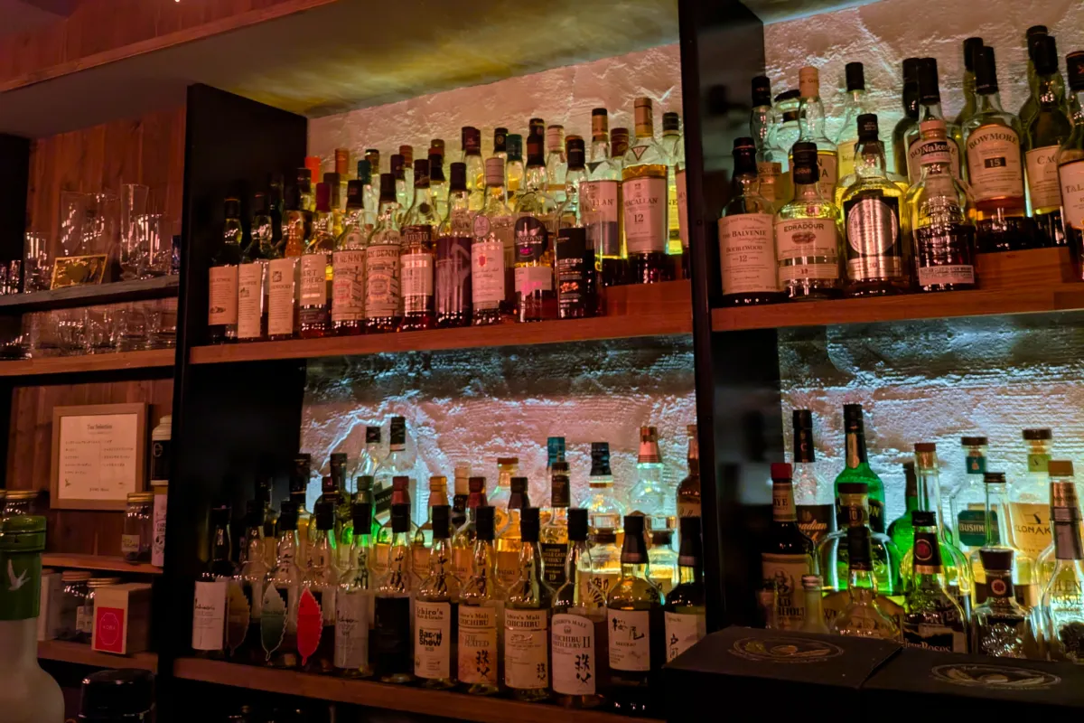 バックバーにはさまざまなお酒が並びます。