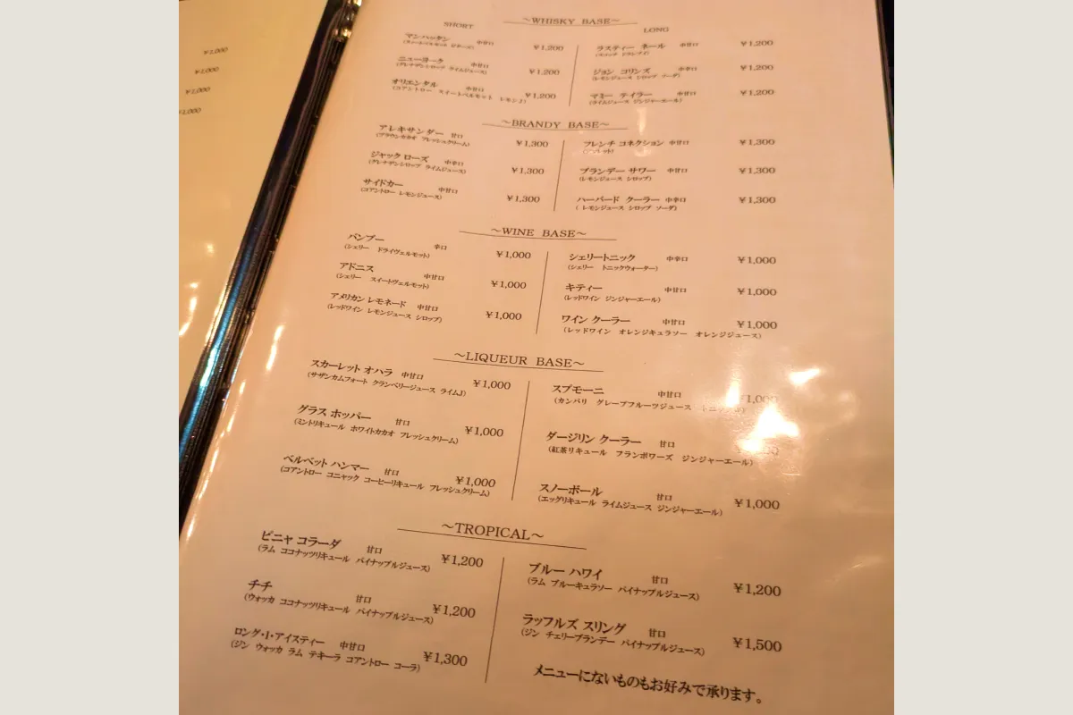 周辺は飲み屋も多いので、2軒目・3軒目にふらっと寄る方が多い印象ですが、バーテンダーさんやバーの雰囲気からか落ち着いたお客さんが来店されている印象です。
