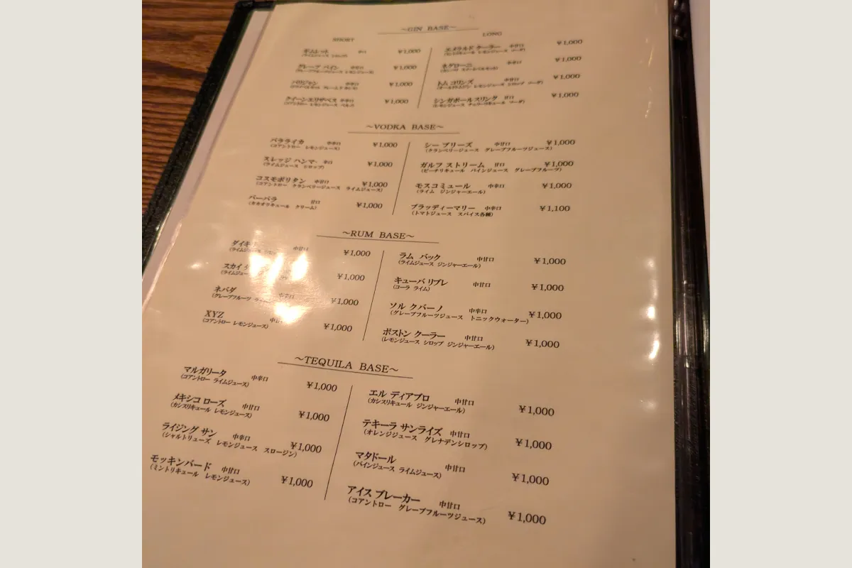Bar Quesera(バーケセラ)はメニュー表があり種類豊富なカクテルが注文可能。