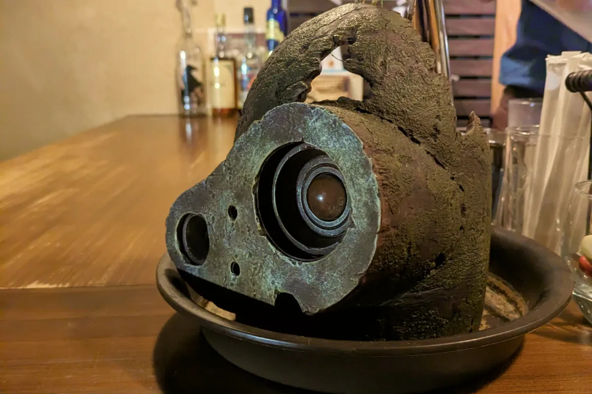 カウンターにある、ラピュタのロボット兵のオブジェ。