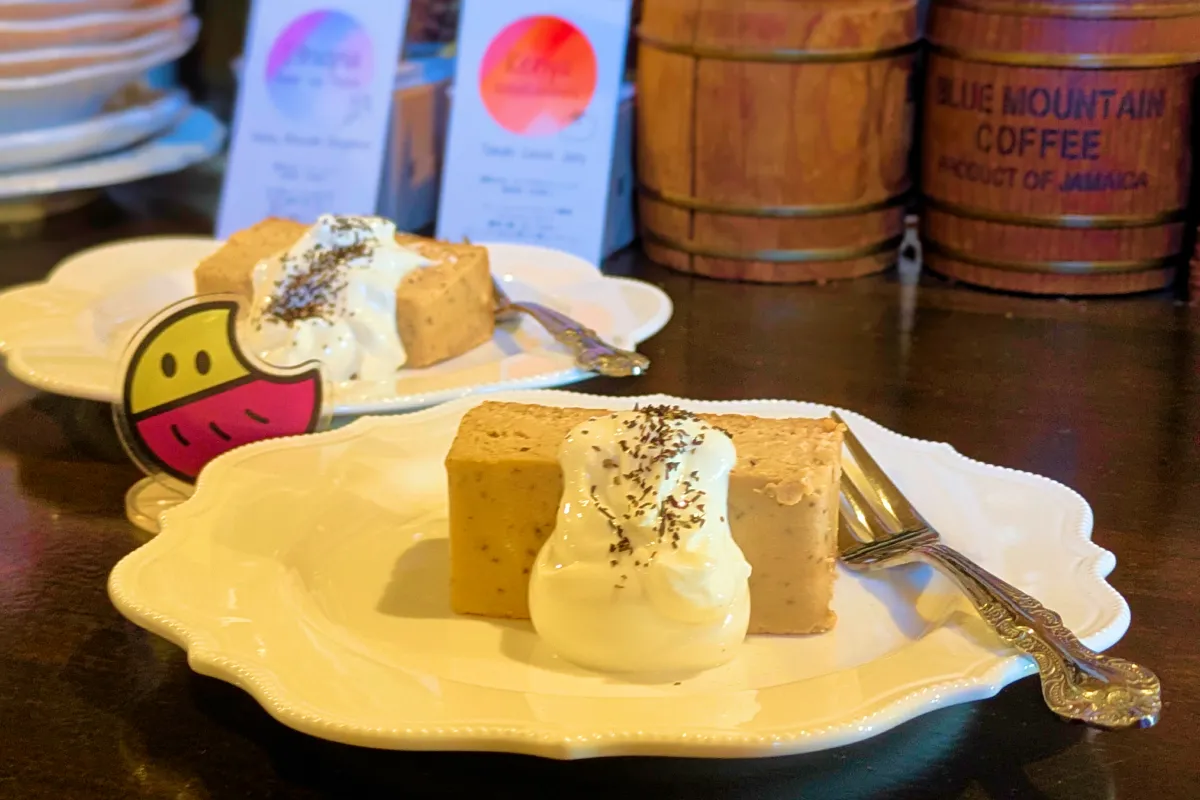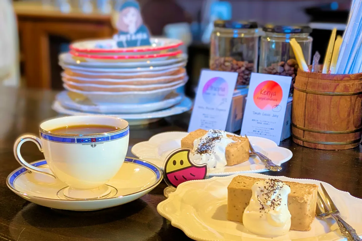 ばんびコーヒーでは、ハンドドリップコーヒーとデザートのセットを提供!