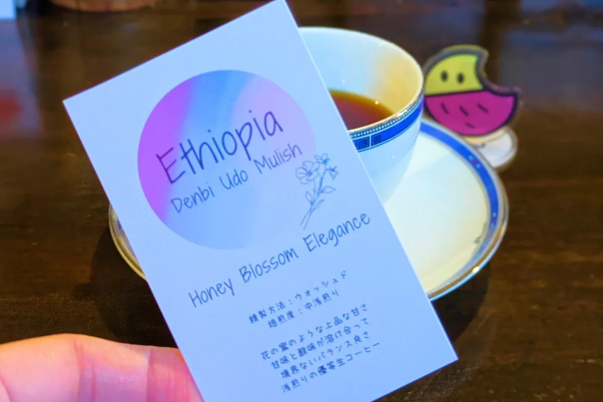 浅煎りのエチオピア。浅煎りの甘みと珈琲のコクのバランスがよく飲みやすい一杯でした。