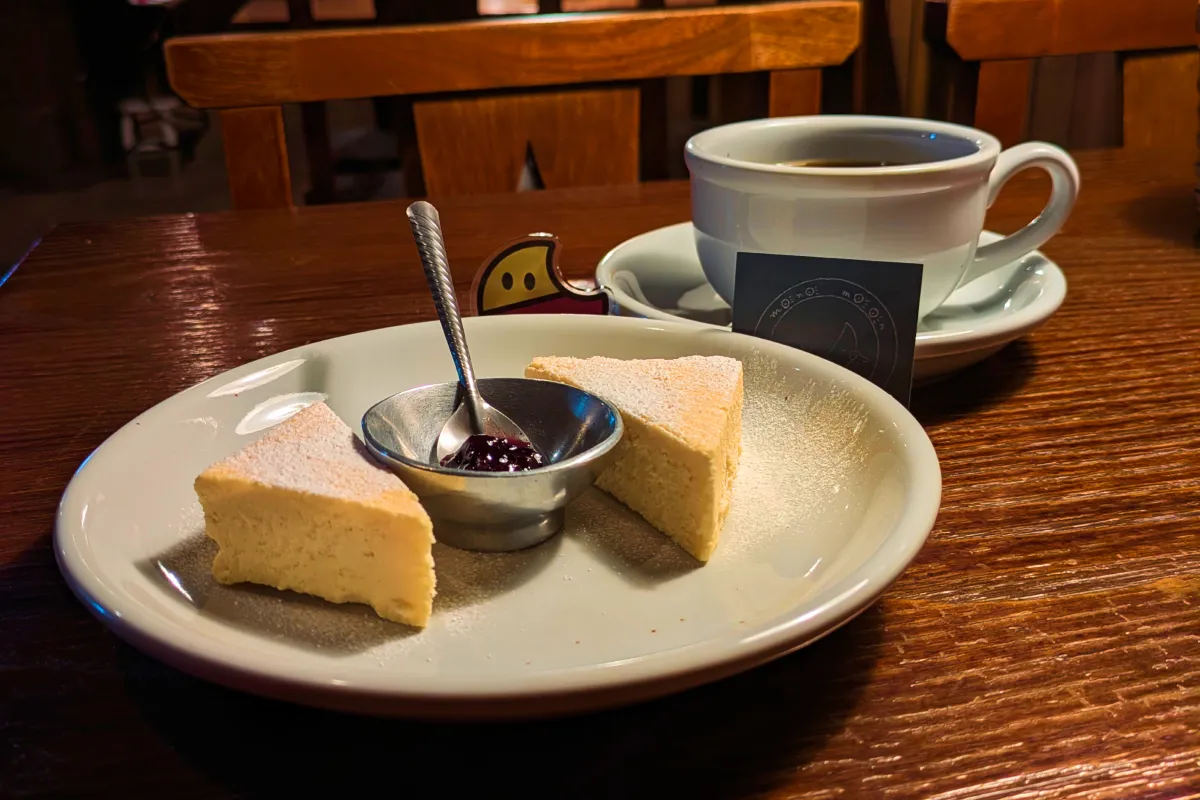 チーズケーキは焼き目の層が特徴で、しっかりとした風味が珈琲と絶妙にマッチします。