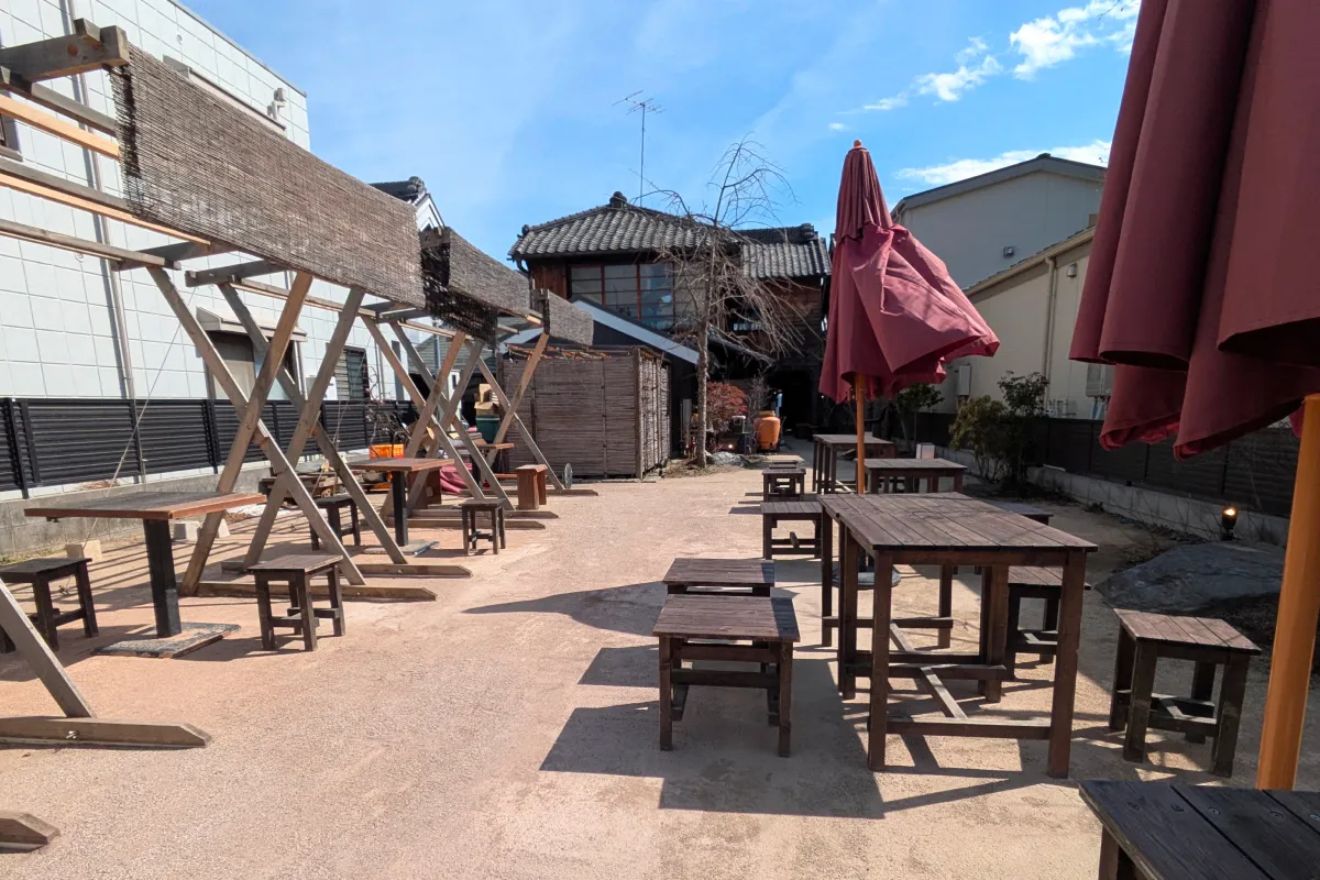 COEDO HACHI(小江戸焼き芋 はち)では、建物の奥側に広いテラス席があります。
