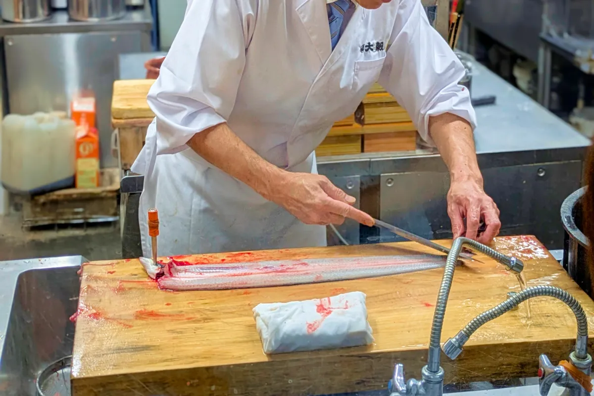 捌いて焼く工程は店頭の窓から見ることができます。なかなか貴重…!