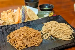 野菜天そば切りは、サックサクの天ぷらとこだわりの蕎麦を楽しめるメニューです。