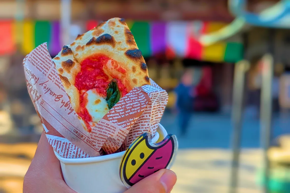 もっちりした少し軽めのピッツァ生地とトマトソースの酸味が効いた本格ピッツァを食べ歩きできます。
