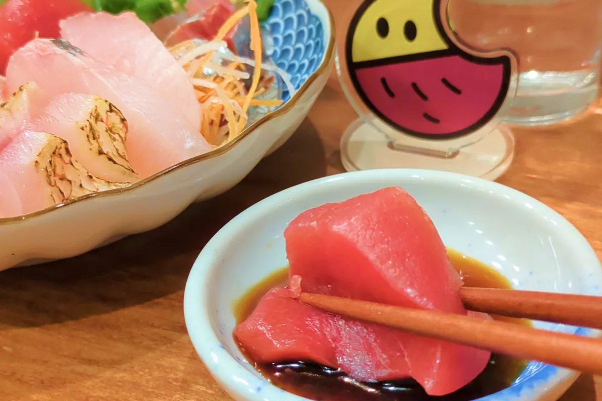 分厚く新鮮な刺し身と九州系の甘口醤油が相性抜群です…!