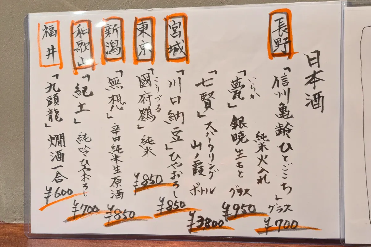 仕入れによってさまざまな種類の日本酒を味わえます。