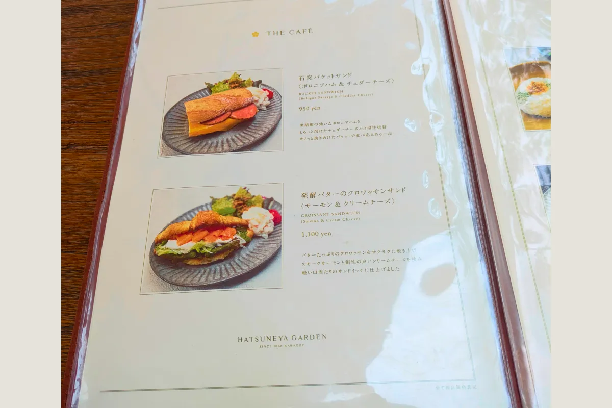 ハツネヤガーデン カフェのメニュー