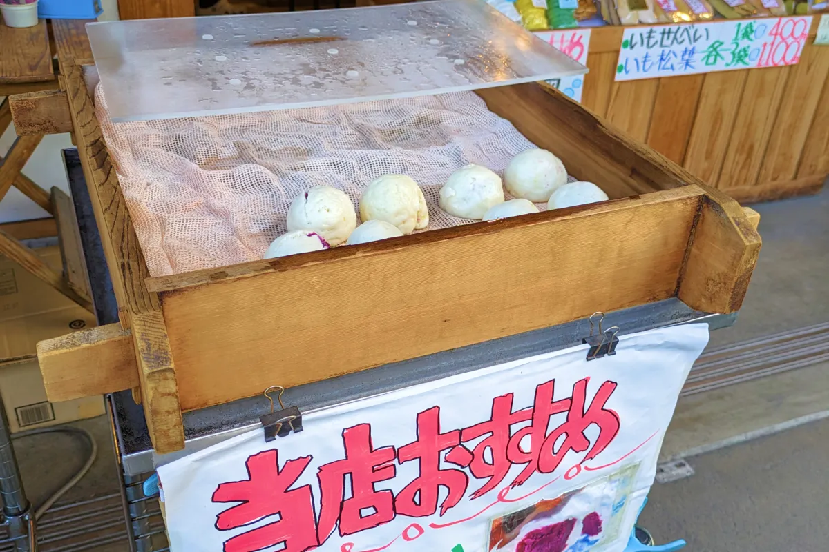 芋せんべい・いもどうなつなどのお土産から、食べ歩きにぴったりな紫いもまんじゅうも提供しているお店です。