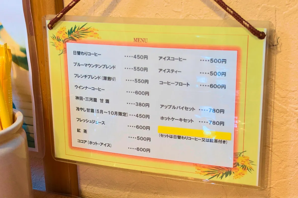 コーヒー一杯450円〜で、セットメニューでも780円とかなり安い価格帯です。