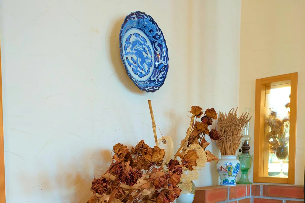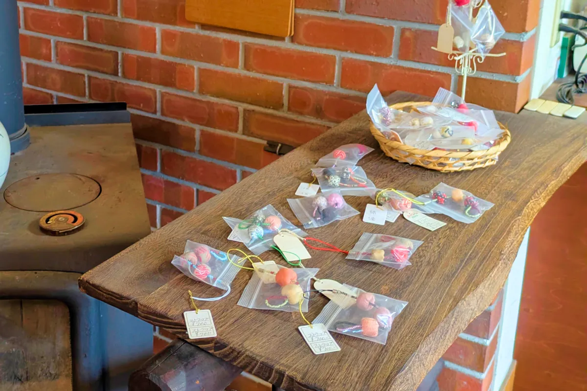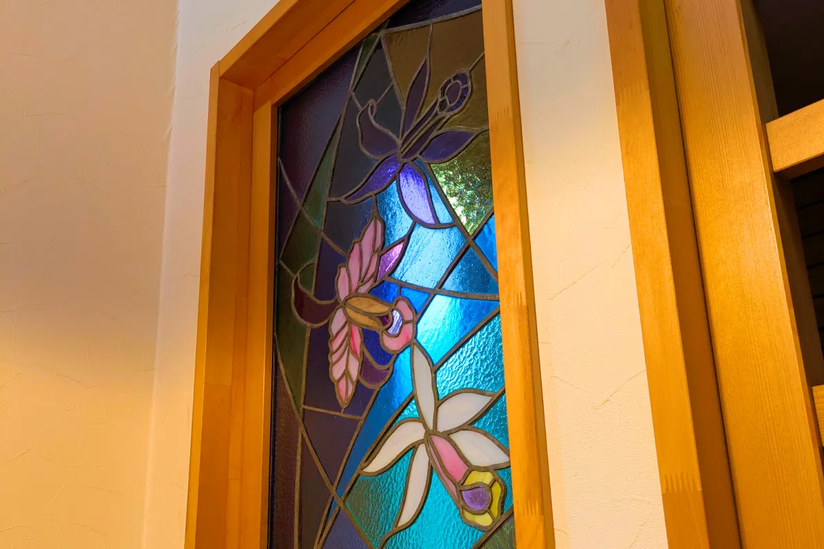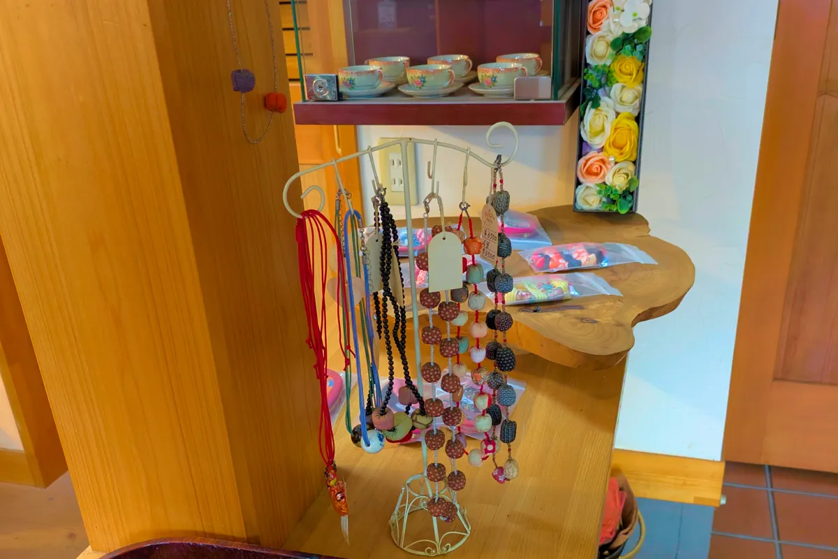 - ギャラリー併設の素敵な空間は、ステンドグラスが彩る店内で、ハンドメイド作品も展示・販売