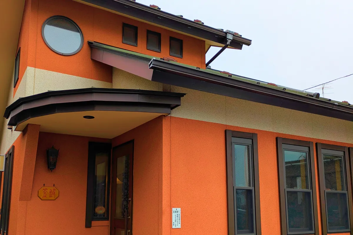 鮮やかなオレンジ色の外観のカフェとなっています。