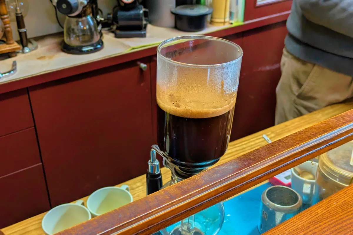 サイフォン式で淹れたコーヒーやスイーツ、甘酒なども楽しめるお店です。
