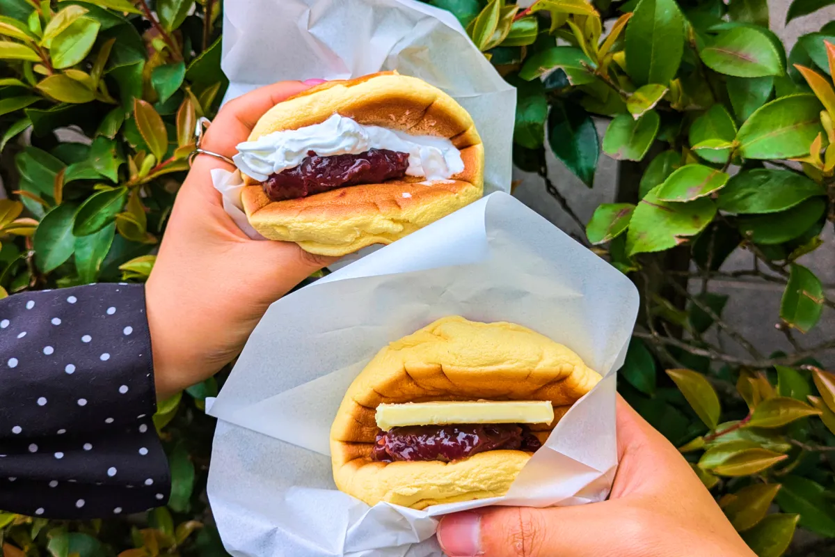 ふわっふわのスフレ生地のどら焼きに挟まれたあんこやトッピングで楽しめます。