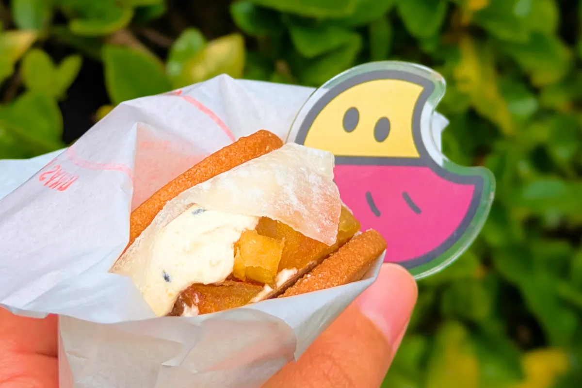 自家製クッキーのサクほろ感と求肥のもちもちさ、川越いものほくほく感と食感も楽しめる一品です。