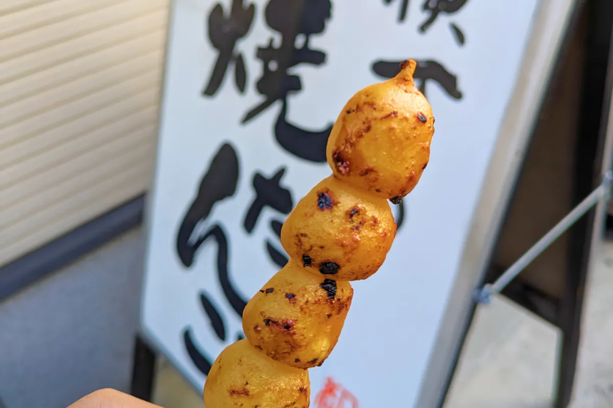 焼きたてではありませんが、50円支払ってすぐに焼きだんごが提供されるのは嬉しいポイント。