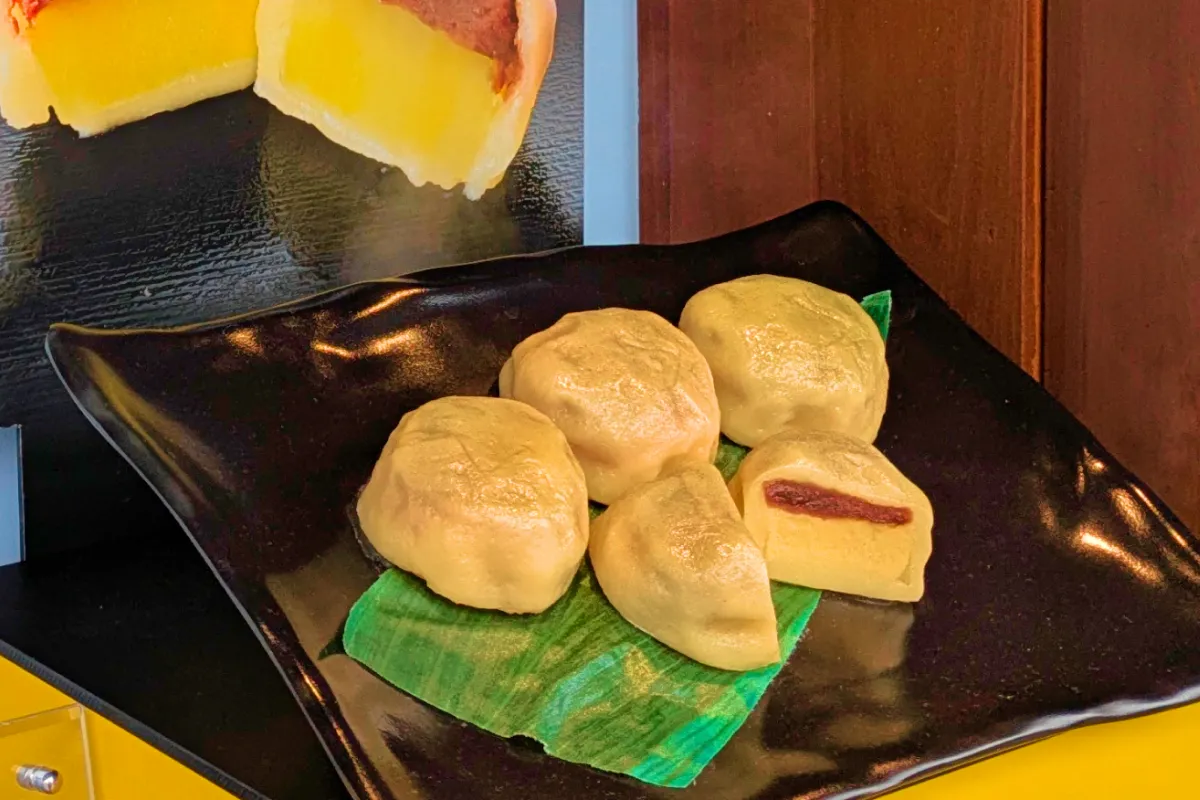 川越では似たようなものとして、菓匠 右門によるいも恋がありますが、はちみつの杉養蜂園の本社が熊本県なこともあり、九州名物のいきなり団子として提供されています。