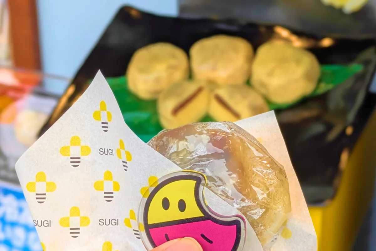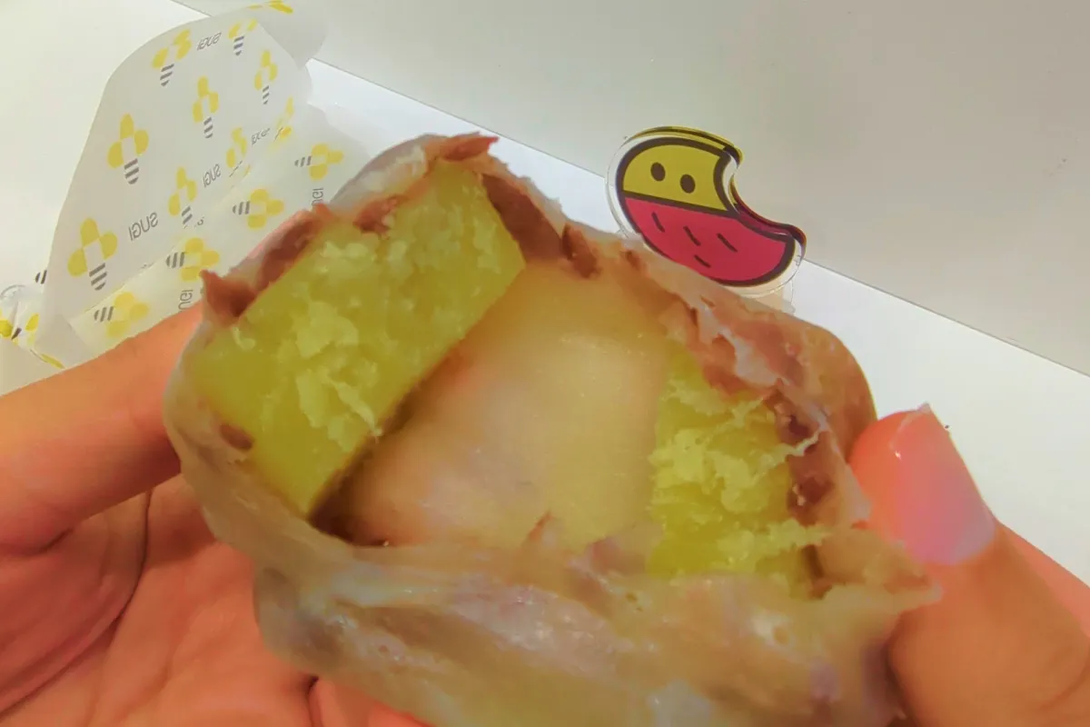 芋とあんこをお餅で包み、はちみつも混ぜ込んだ食べ歩きスイーツです。