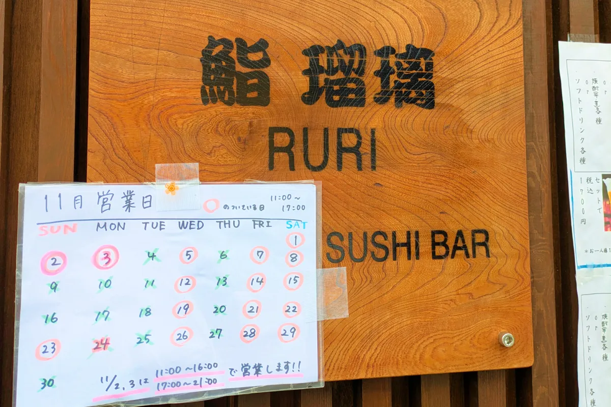 鮨 瑠璃 幸町店の営業日・営業時間は、水金土中心。