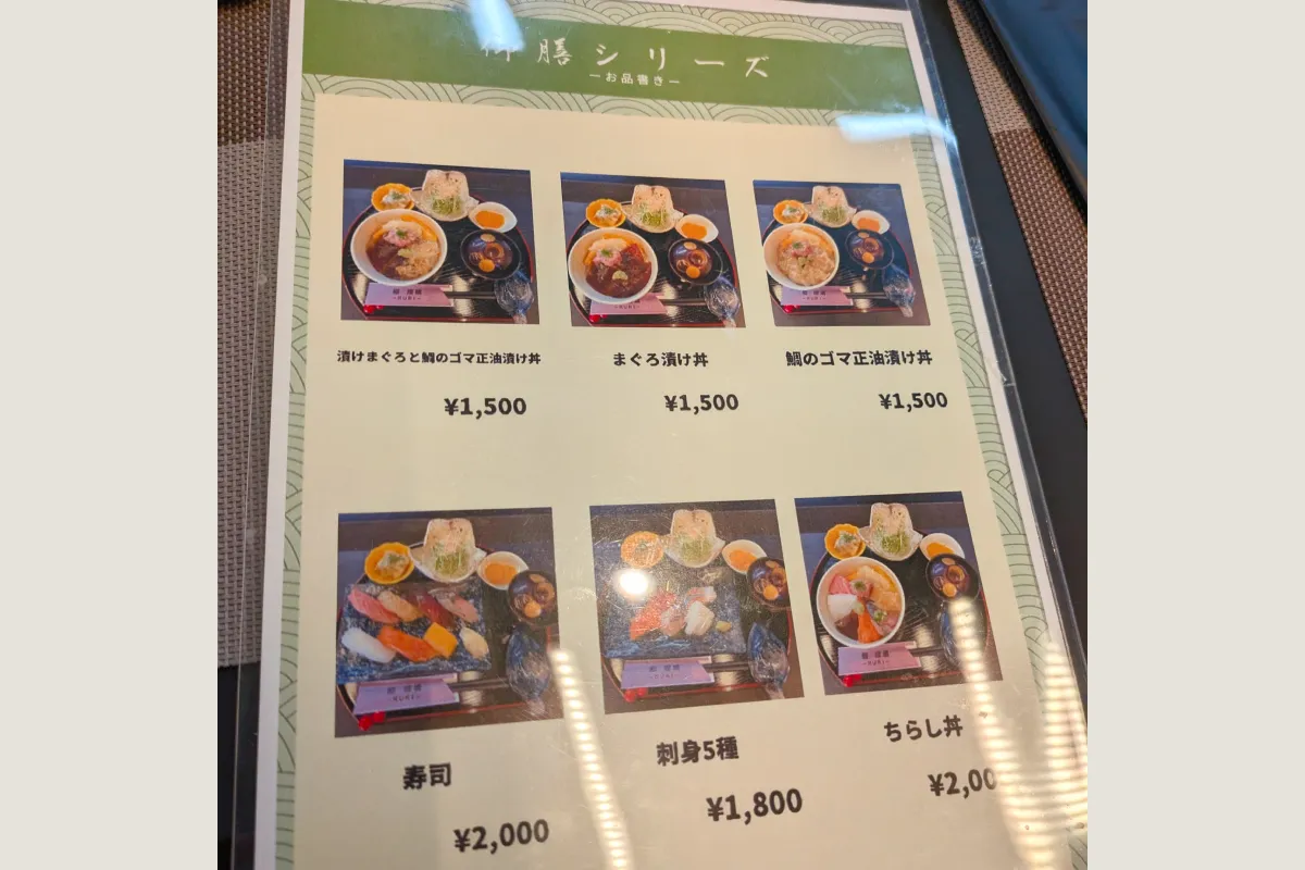 御膳シリーズでは、ランチにぴったりな丼ぶりメニューや寿司・刺身のセットも。
