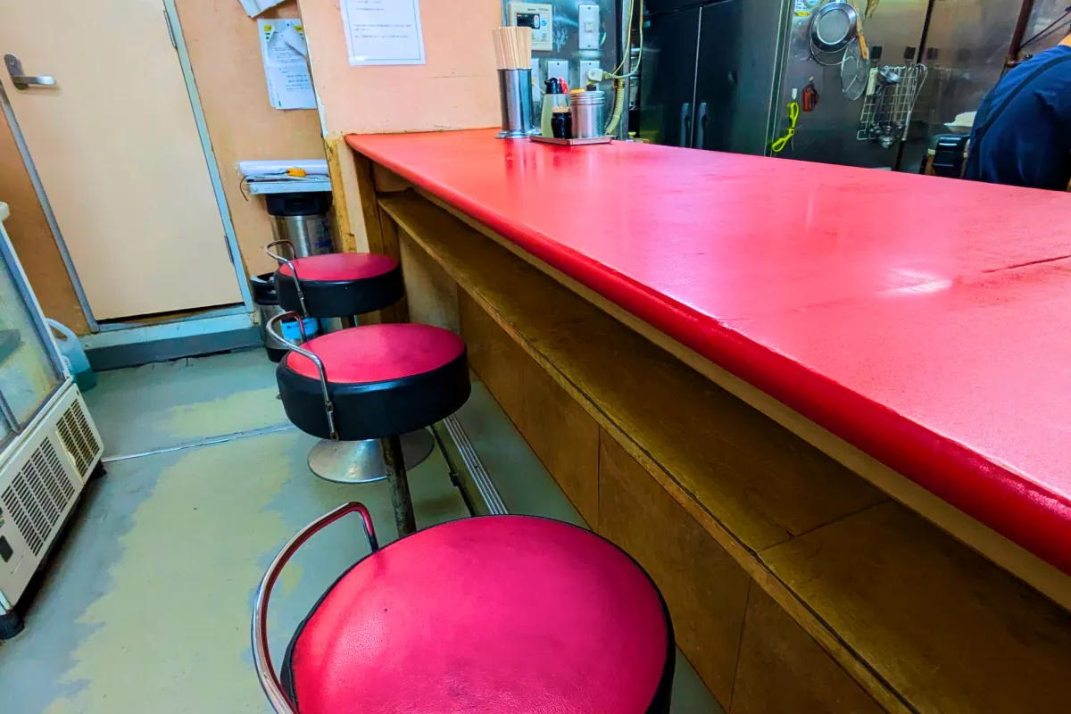 席はカウンター席のみで、1人のお客さんがほとんどで、たまに2人程度のお客さんが入店してきます。
