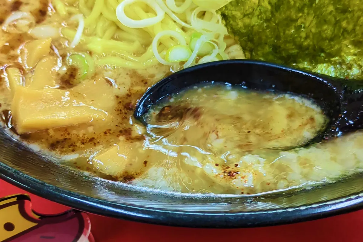背脂のコクが濃厚なとんこつスープ!