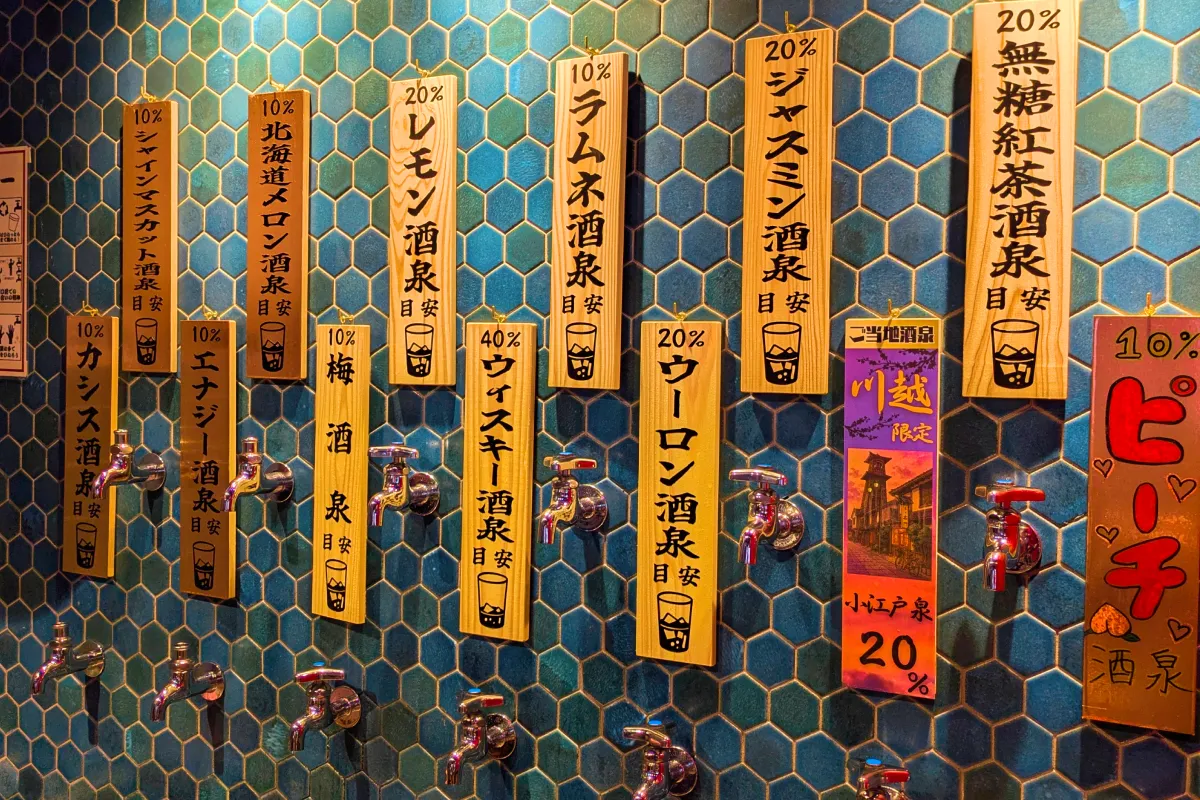銭湯がコンセプトの居酒屋で、蛇口をひねる飲み放題システムや激安価格メニュー、銭湯のような演出・店内など見どころたくさんの居酒屋が、川越市に初上陸しました。