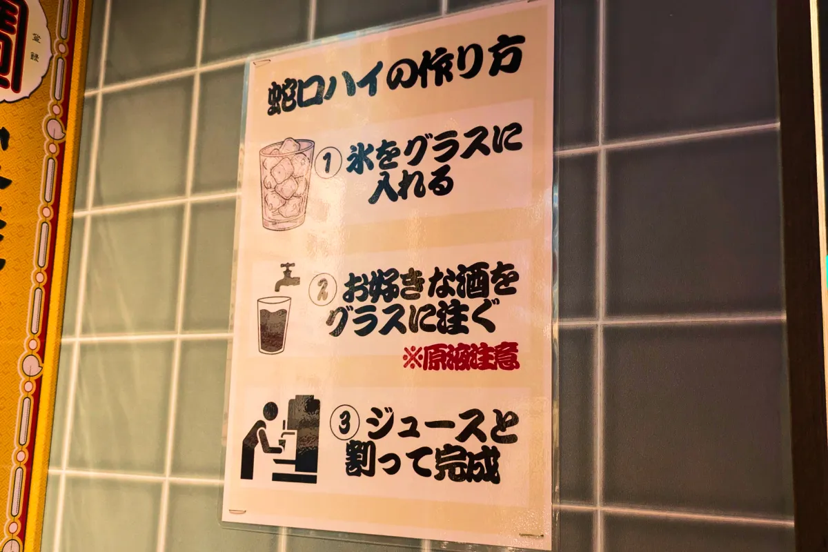 蛇口ハイの作り方やマナーについては店内の壁に丁寧に記載されています。