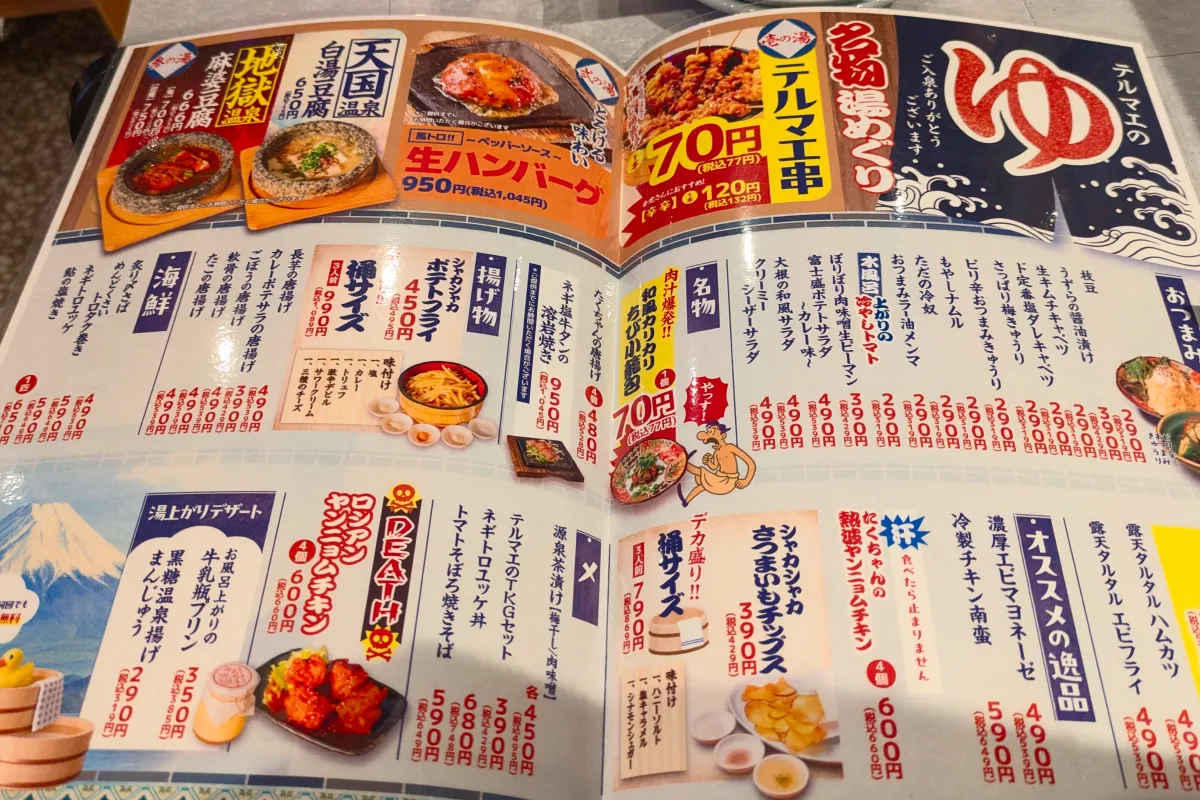 ひねり蛇口ハイ 大衆酒泉テルマエ 本川越駅クレアモール泉の食事メニュー一覧