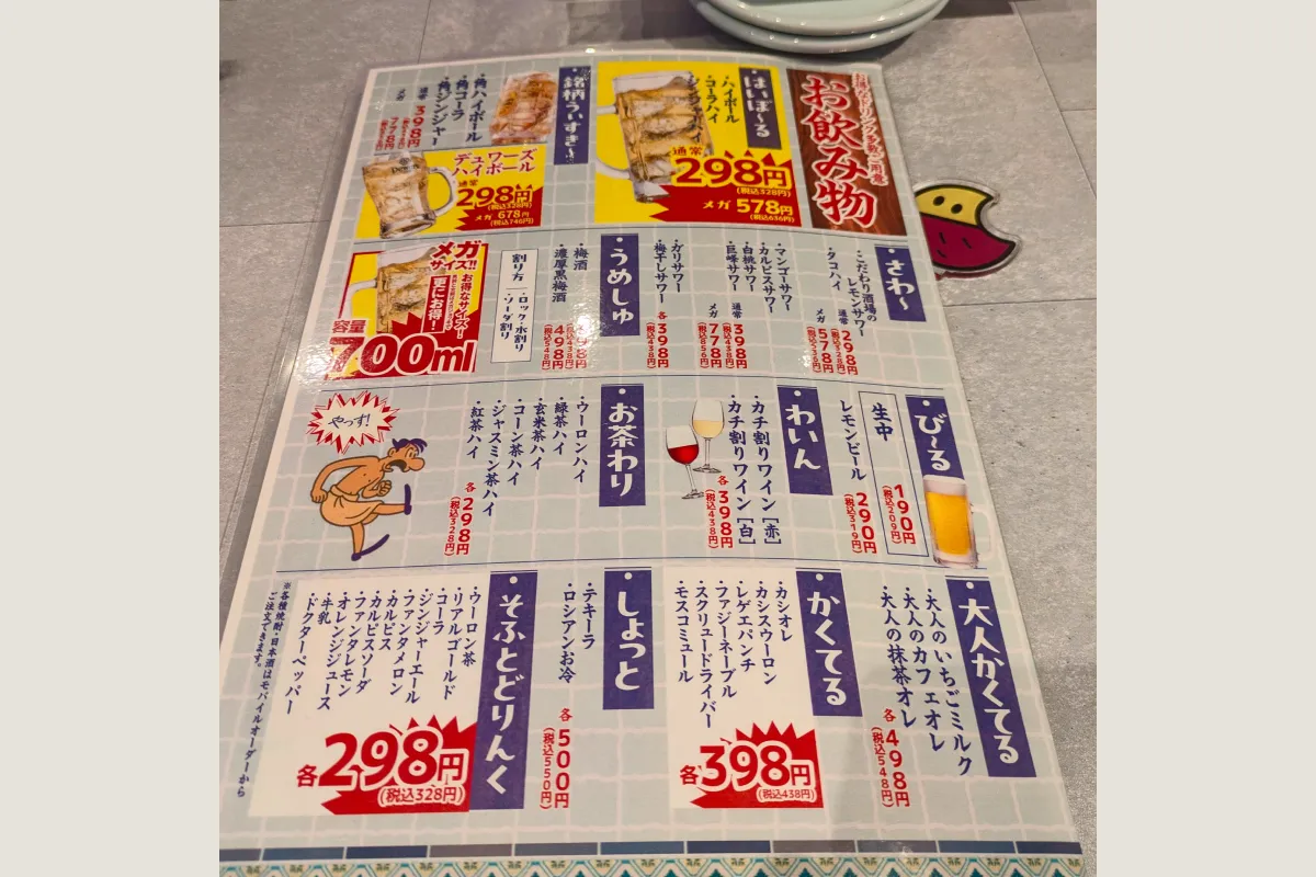飲み放題は、1時間398円の完全セルフ式飲み放題からオプションで注文できます。