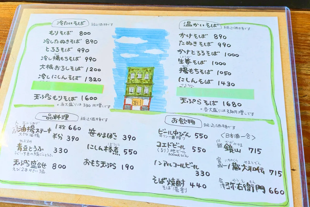 福島県の会津・山都町産そば粉を使い手打ちした二八そばを提供しているお店です。