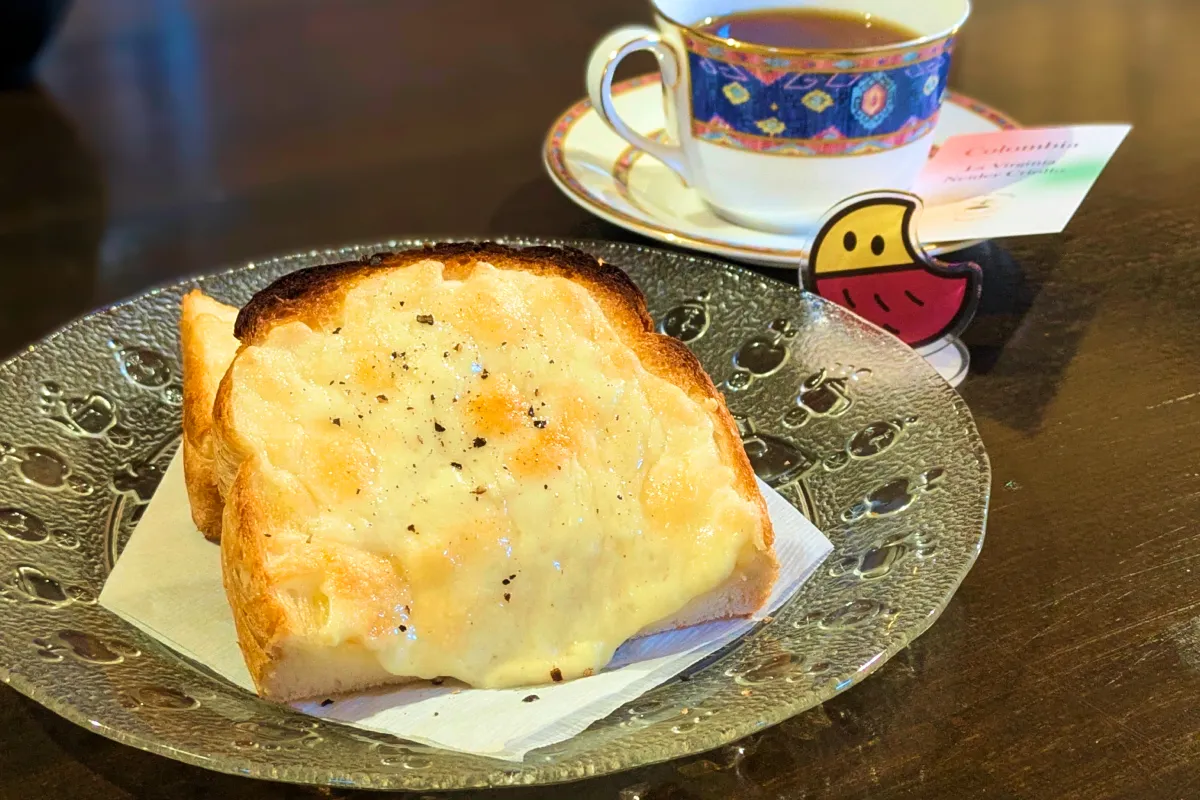 コーヒーの味わいも楽しみつつ小腹も満たせるトーストは提供しており、これが絶品で人気。