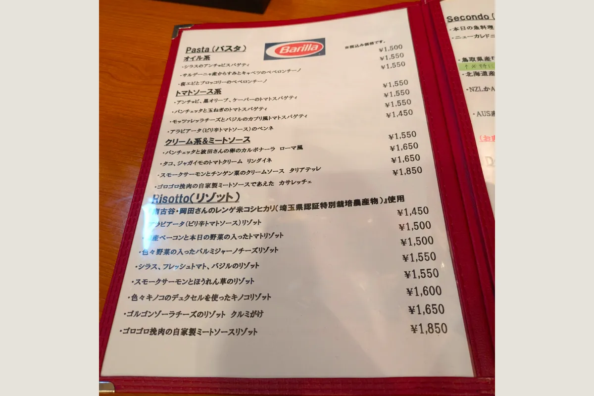 Trattoria Caro(トラットリアカーロ)のメニュー