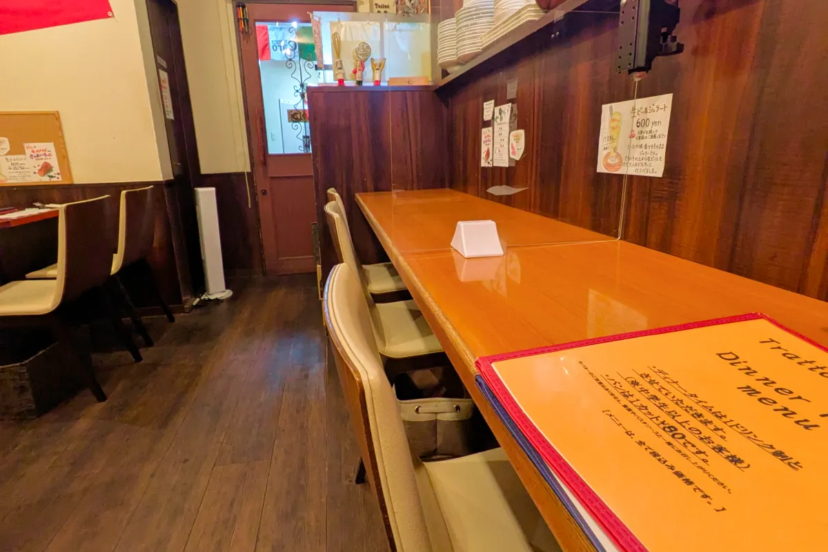 Trattoria Caro(トラットリアカーロ)の店内は、カウンター席・テーブル席あり。