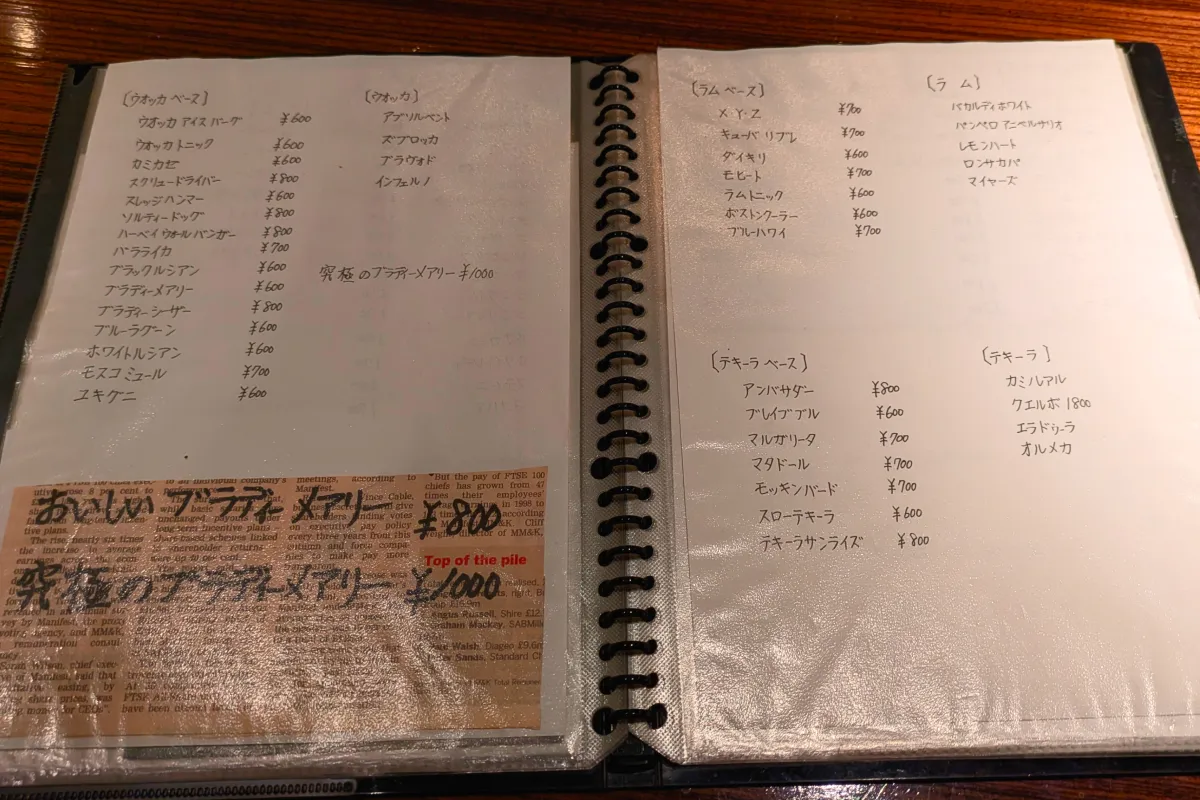 ウイスキーは500円〜、カクテルは600円〜とかなりリーズナブルなラインナップとなっています。