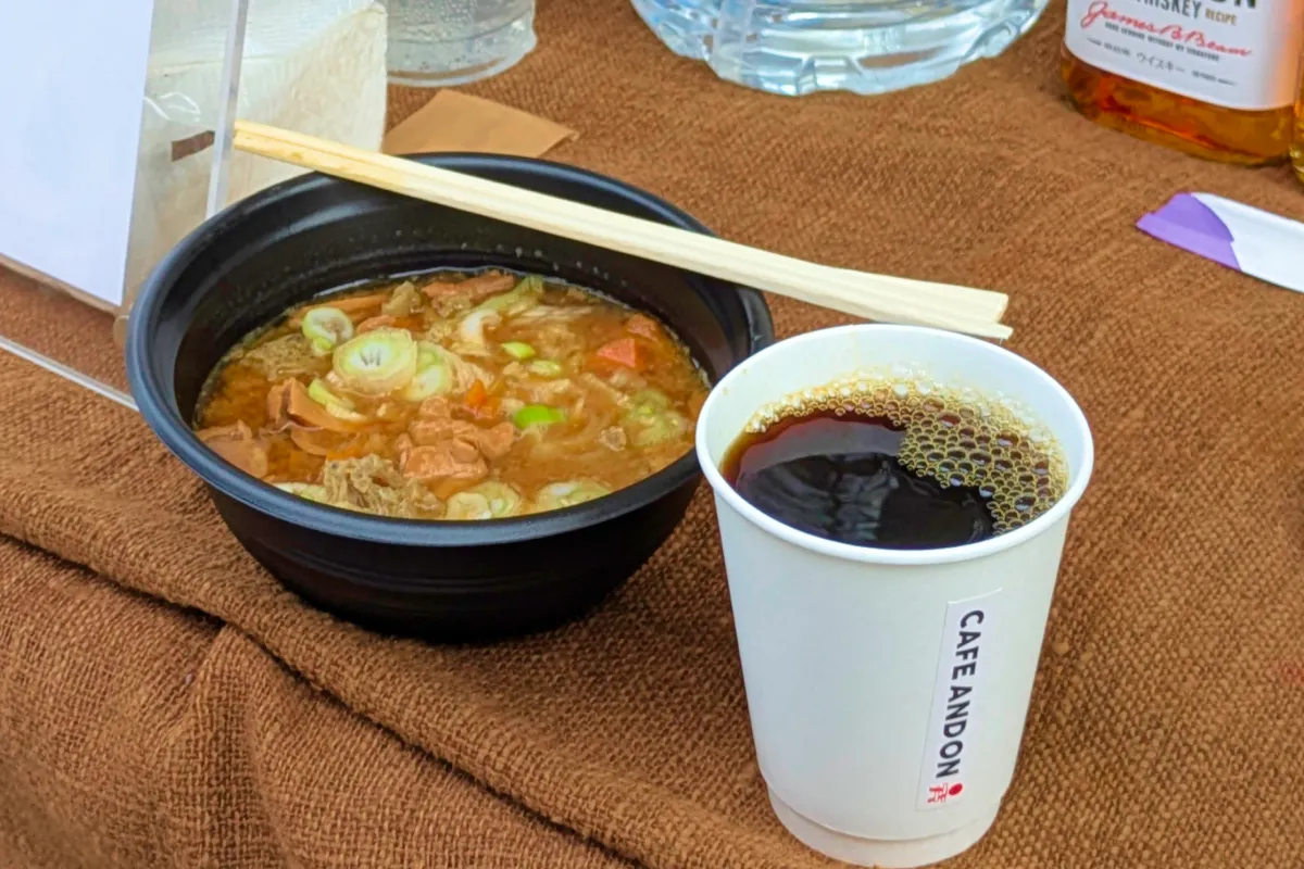 川越メル珈琲では、ブロマージェの隣の駐車場にて、フランクフルトや焼きそばなどを提供していました。