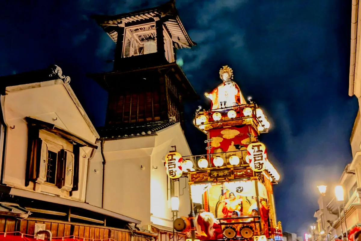 下から山車とりそなコエドテラスとともに眺めるのもおすすめです。