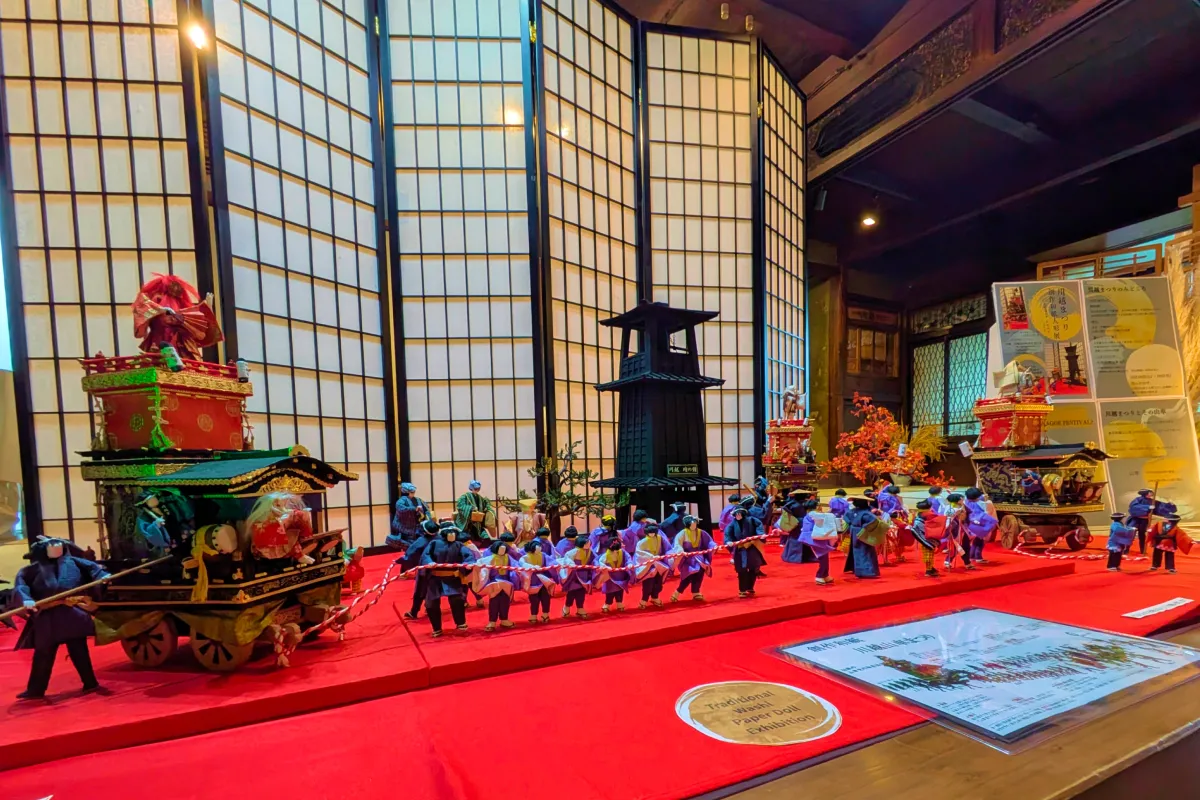 また、仲町観光案内所では和紙を使った山車や時の鐘の展示も。