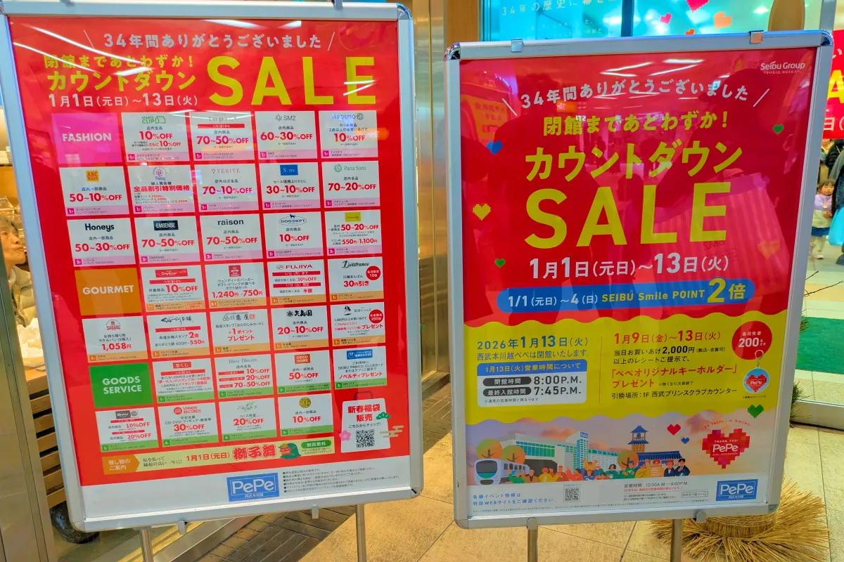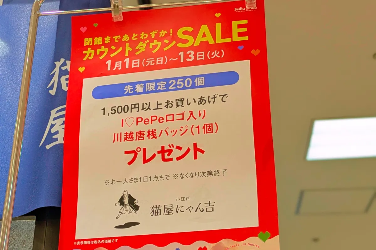 2026年1月1日の元日から、西武本川越ペペ(PePe)閉館の1月13日まで、カウントダウンセールを開催。