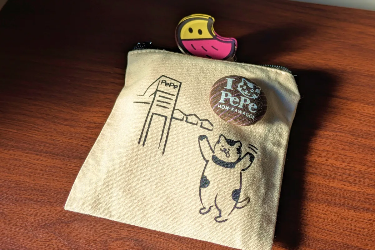 西武本川越ぺぺ(PePe)内にある猫屋にゃん吉では、I♡PePeロゴ入りの川越唐桟バッジのプレゼント企画を実施。
