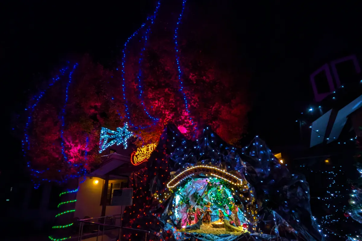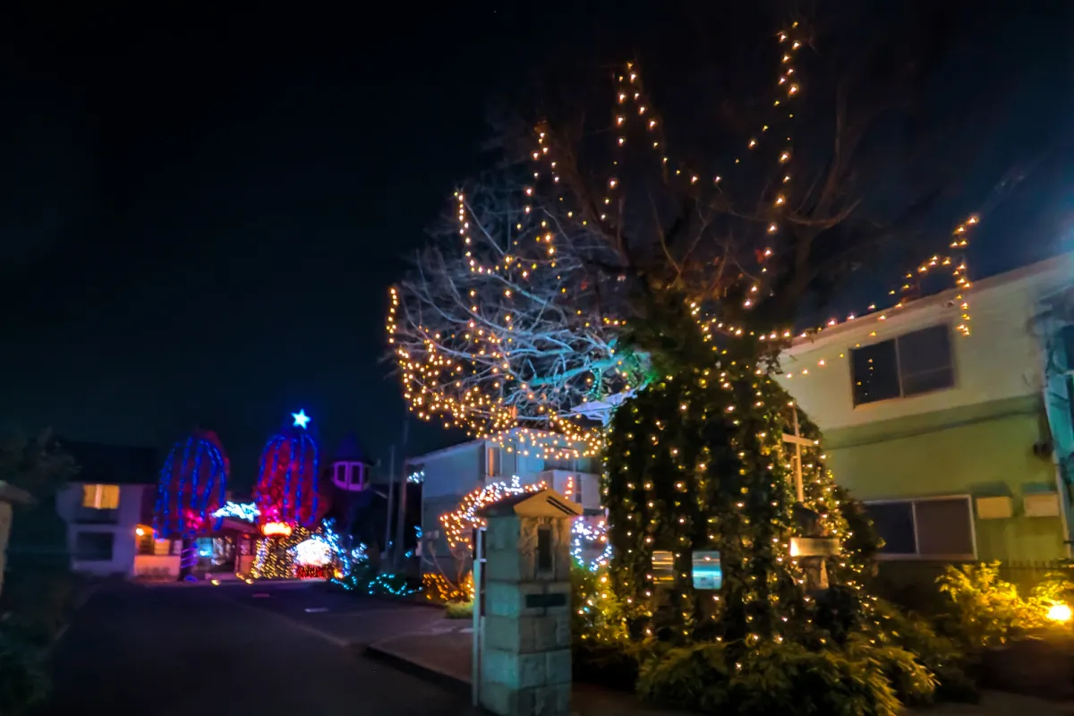 クリスマスイルミネーションは豪華ですが、周辺は住宅地域。