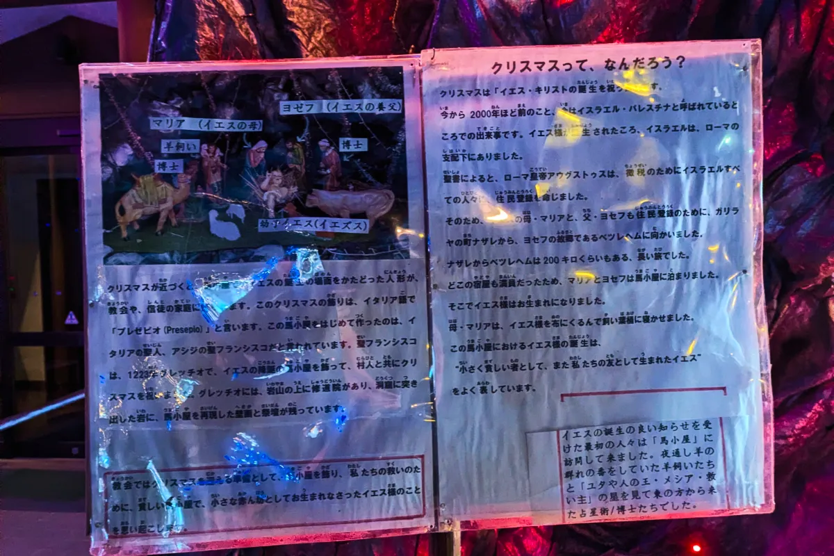 カトリック川越教会の教会前には、クリスマスに関する説明も記載。